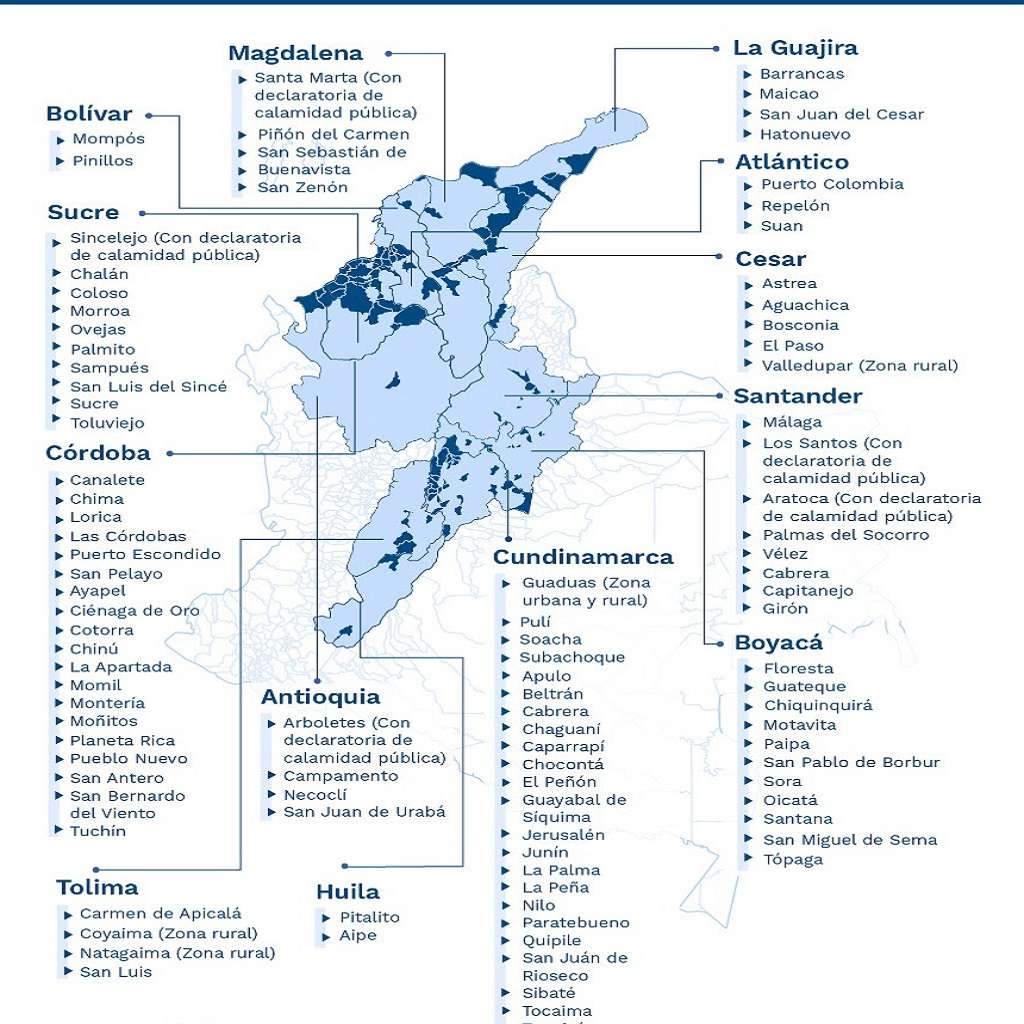 “A la fecha tenemos 102 municipios que han registrado algún grado de afectación en la prestación del suministro de agua apta para el consumo humano. Es importante aclarar que la estimación de agua requerida para situaciones de emergencia se basa en un cálculo de dotación de 25 litros por habitante al día, esta estimación se hace para el requerimiento de la totalidad de la población urbana, lo que no implica que estas sean las necesidades actuales, dado que no en todos estos municipios hay desabastecimiento en la totalidad de las cabeceras urbanas”, explicó el viceministro de Agua y Saneamiento Básico, José Luis Acero.