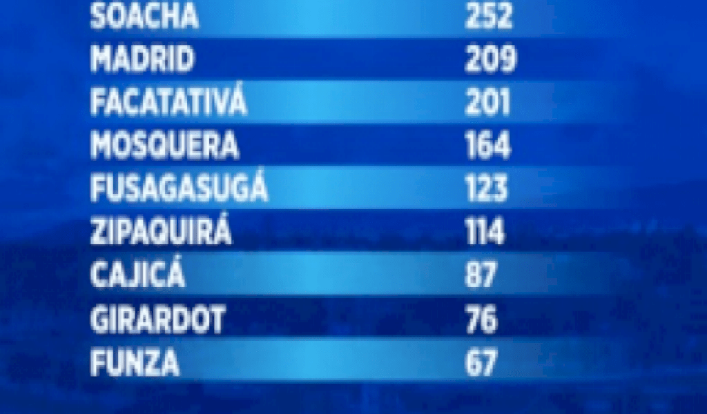 Se trata de Soacha, Mosquera, Madrid, Facatativá, Funza, Fusagasugá, Girardot, Cajicá y Zipaquirá.