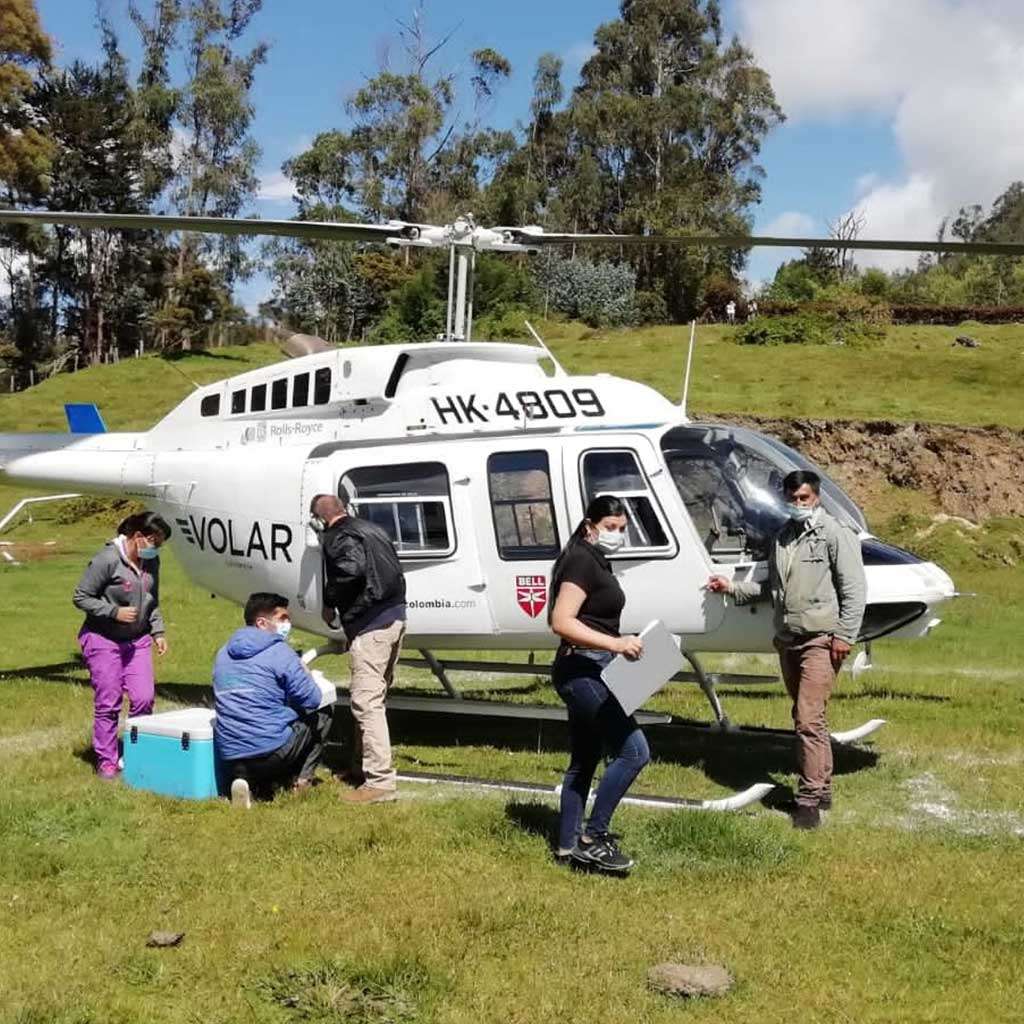 En helicóptero llegan vacunas Covid a regiones de Cundinamarca