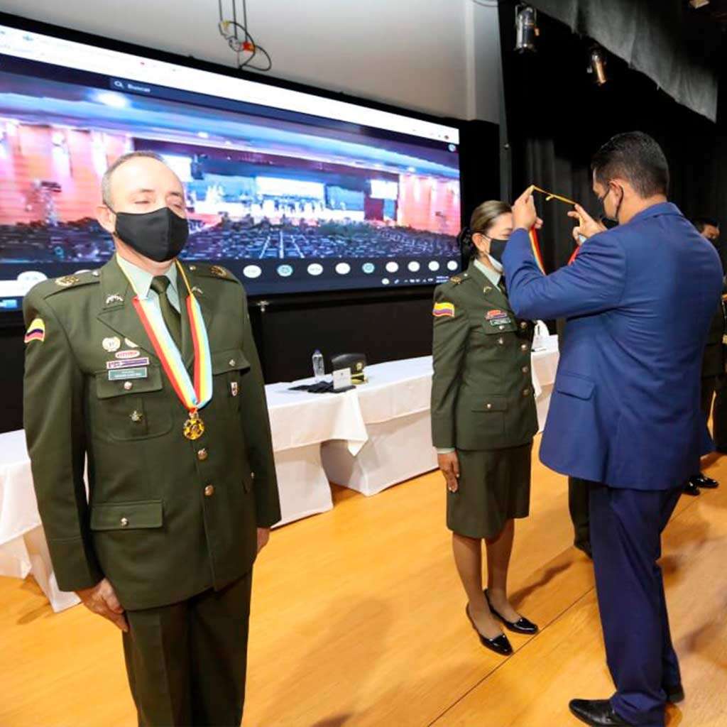 En desarrollo de la ceremonia el Gobierno Departamental impuso las condecoraciones a miembros de la Institución cuyo trabajo se ha destacado, y en el caso de aquellos fallecidos en ejercicio de su deber, de manera póstuma, les fue entregada a sus familiares sobrevivientes.