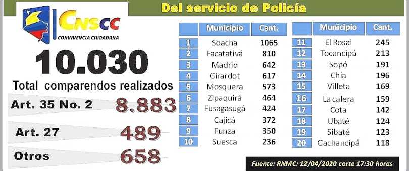 De acuerdo a la información de la Policía los municipios con más infractores son en su orden Soacha, Facatativá, Madrid, Girardot, Mosquera y Zipaquirá.