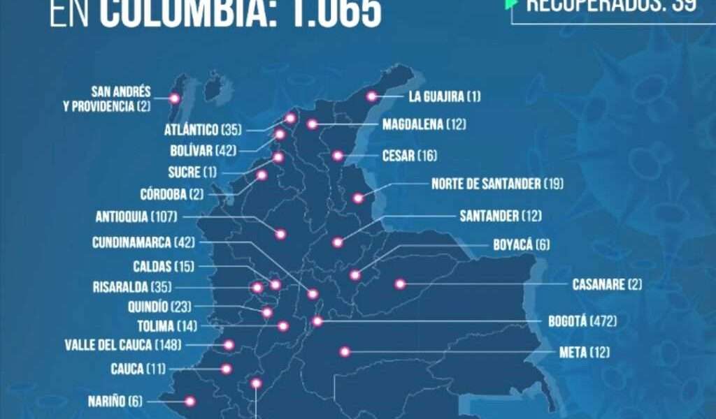 Confirmamos 159 casos nuevos de coronavirus y 1 fallecido, para un total de 1065 pacientes con COVID-19 y 17 muertes en Colombia.