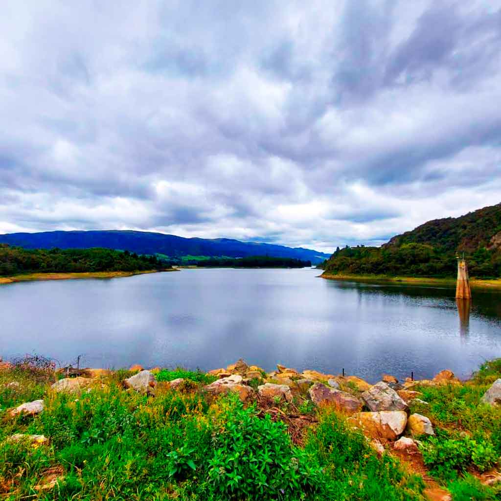 El embalse de Tominé cuyo nivel es de 2.584 metros sobre el nivel del mar y tiene un volumen almacenado de 218 millones de metros cúbicos, que corresponden al 35% de su capacidad.