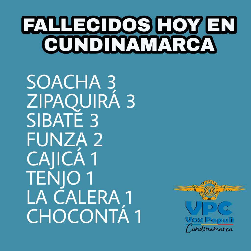 Estas son los municipios en los que se registran las 15 muertes por Covid 19 este miércoles 12 de agosto en Cundinamarca.